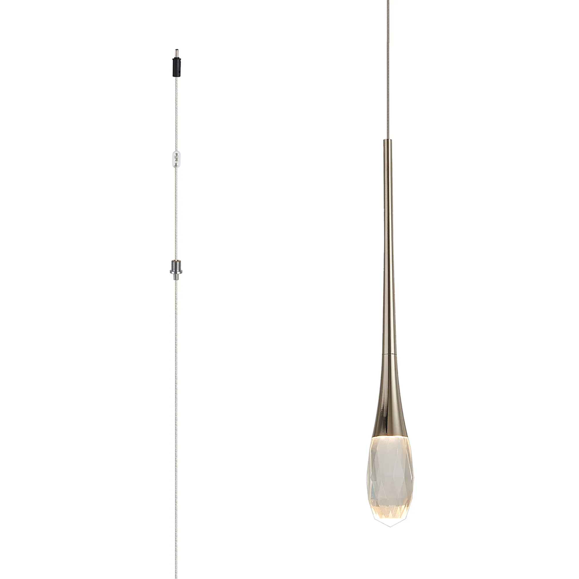 Paris Style X Polished Nickel/Facetted Crystal, 1 x 3W LED, 3000K, 110lm, 5m Assembly Pendant With A DC Plug